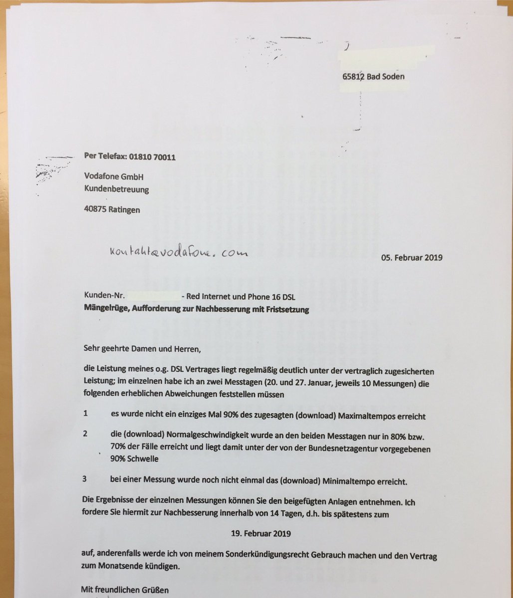 Vodafone Sonderkundigungsrecht Vorlage Fur Dsl